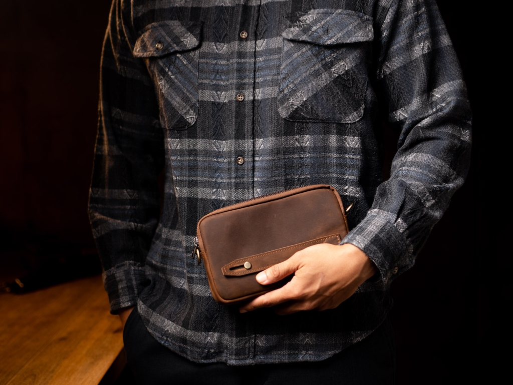 Clutch cầm tay da bò mini nhỏ gọn, có thể kết hợp đeo chéo với dây quai rời. Kích thước ví cầm tay được tối ưu để đựng các vật dụng cơ bản cho cuộc sống hàng ngày như bóp, ví, điện thoại, sạc dự phòng....